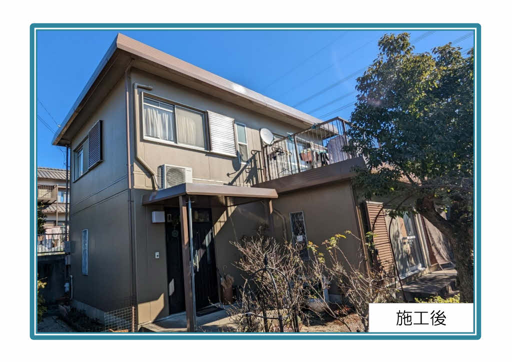 令和5年1月施工・春日井市 T 様 外壁・屋根塗装工事 BEFORE AFTER 施工エリア:春日井市 施工費用:71.0万円(税込) お客様の声 VOICE 見積から完了まで本当に丁寧にやって頂きありがとうございました。営業の伊藤さん、職人の青山さん、他の方々、本当にありがとうございました。感謝です。 prev. 令和5年1月施工・千種区 T 様 next. 令和5年2月施工・日進市 I 様 この事例を読んだ方はこんな事例を読んでいます。 令和7年2月施工・春日井市 M 様 施工エリア:春日井市 コーキング工事カーポート工事外壁・屋根塗装工事 令和7年2月施工・春日井市 S 様 施工エリア:春日井市 鈑金工事その他外壁・屋根塗装工事 令和5年9月施工・春日井市 T 様 施工エリア:春日井市 コーキング工事その他外壁・屋根塗装工事雨樋工事 令和5年6月施工・春日井市S 様 施工エリア:春日井市 外壁・屋根塗装工事