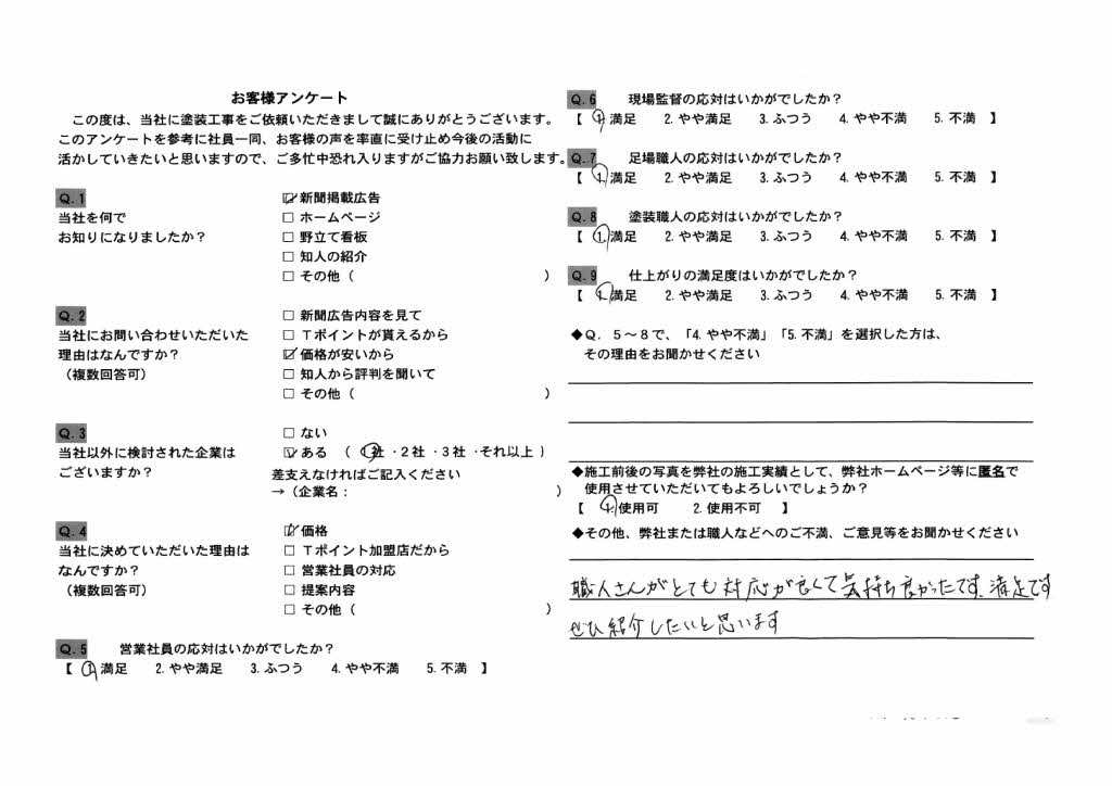 令和7年12月施工・岡崎市 T 様 外壁塗装工事(母屋:離れ:屋根) BEFORE AFTER 施工エリア:岡崎市 お客様の声 VOICE 職人さんがとても対応が良く気持ち良かったです。満足です。ぜひ紹介したいと思います。 prev. 令和7年12月施工・岡崎市 T 様 next. 令和7年12月施工・岡崎市 T 様 この事例を読んだ方はこんな事例を読んでいます。 令和7年12月施工・岡崎市 T 様 施工エリア:岡崎市 外壁塗装工事(母屋:離れ:屋根) 令和7年12月施工・岡崎市 T 様 施工エリア:岡崎市 外壁塗装工事(母屋:離れ:屋根)